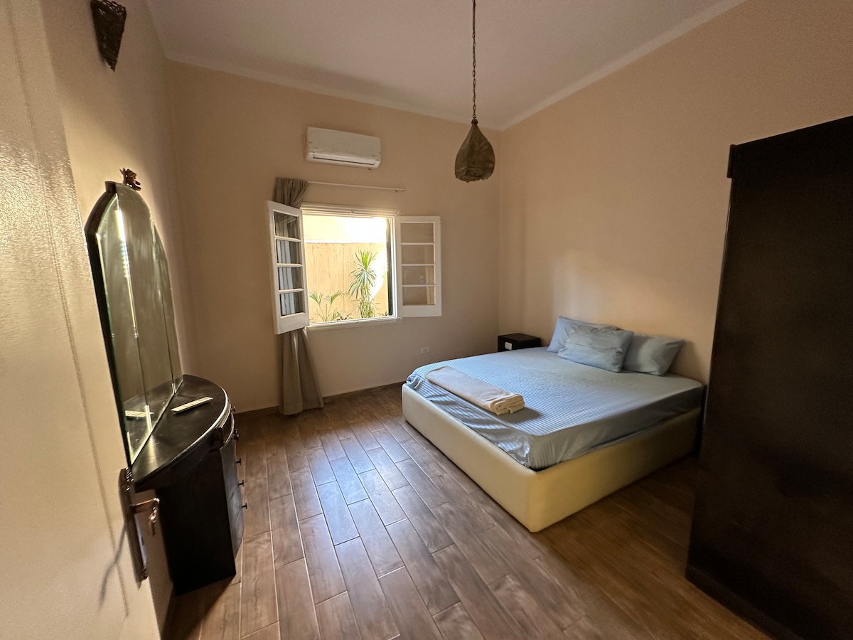 Историческая,ностальгическая и блестящая квартира расположена в центре Каира . Большая комфортабельная гостиная с 48-дюймовым телевизором Smart TV,Wi-Fi,кофейным уголком и диваном-кроватью, который можно открыть для одного дополнительного человека ,наслаждаясь очень солнечным видом ,полностью загруженная кухня и уютная ванная комната. В спальне с кондиционером есть удобная двуспальная кровать размера Queen size, а также прекрасный обеденный стол. Квартира полностью новая и 3 монетные дворы Египетского музея,площади Тахрир и реки Нил.