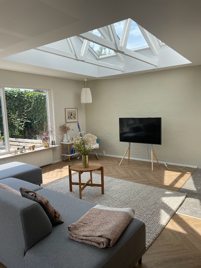 A unique, artistic and spacious 100 m² apartment with 3 bedrooms in charming Trøjborg, Aarhus – including free parking and a cosy privat courtyard with grill and a small lawn. Perfect for families, couples, or friends seeking comfort close to both city and nature. Steps from forest trails, the waterfront, Den Permanente sea bath, and Trøjborg’s cafés, bakeries, cinema, and boutiques. Only a 15-minute walk to the Latin Quarter. A bright and relaxing base to explore the very best of Aarhus.