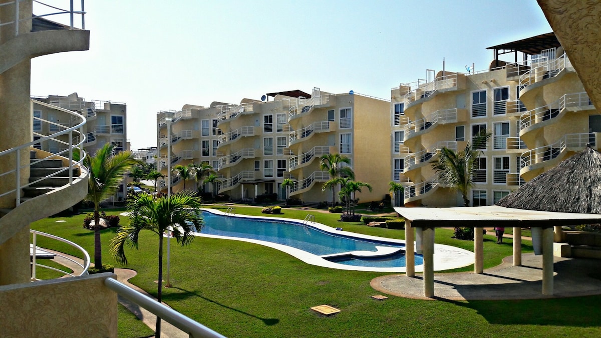 Расслабьтесь со своим партнером или всей семьей в этой тихой квартире. Идеально для пар и семей, которые хотят насладиться уединением и отдыхом. Они могут наслаждаться садами и бассейном, Рядом с водными развлечениями, такими как каякинг и прогулки на скоростных лодках в лагуне Трес-Палос, всего в 10 минутах ходьбы. Окружающие пляжи Bonfil, la Gloría и Barra Vieja - 15 минут.