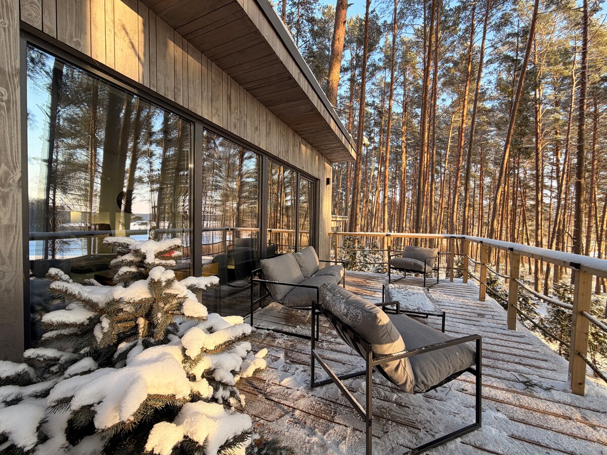 Exclusive vacation house Villa Gauja has everything you need for a perfect holiday in nature! Located 25km from Riga, 3 minutes walking distance from the closest lake, and lazy 20 minutes’ walk through the pine forest to the sea. Inspired by Scandinavian design, it was fully renovated in 2020. It has two bedrooms (one on the first floor; second on mezzanine), bathroom and a studio type living room combined with kitchen, spacious private green garden with wooden terrace and place for BBQ.