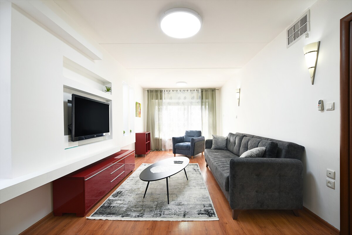 В квартире огромная спальня, гостиная, отдельная кухня, терраса мечты. Вся квартира в вашем распоряжении . Квартира. В номере есть небольшая кровать на 2 человека , стол и стул. Я использую этот дом, когда посещаю север . Есть плита, большая духовка, тостер, микроволновая печь, небольшой холодильник и посуда. Имеется также гостиная с телевизором, диваном и балконом, где можно покурить и повесить белье .