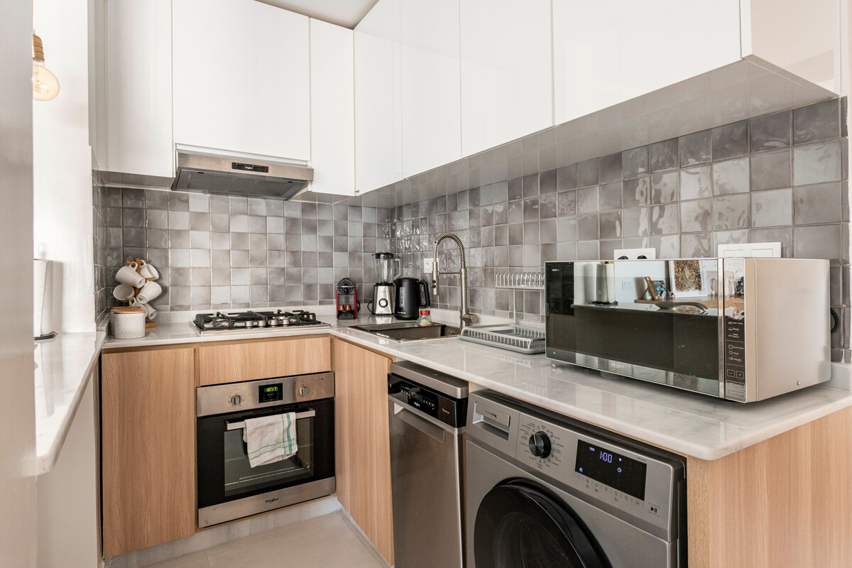 This cozy 2-bedroom apartment is nestled in a brand-new building in Rabat's vibrant Agdal neighborhood, surrounded by restaurants and shopping districts. Featuring a large smart TV, comfortable bedding, work desk, espresso machine and fresh linen/towels, this apartment has everything you need. Enjoy breathtaking city views from the expansive terrace. Steps from the tramway, exploring Rabat's historic Old Medina is effortless.