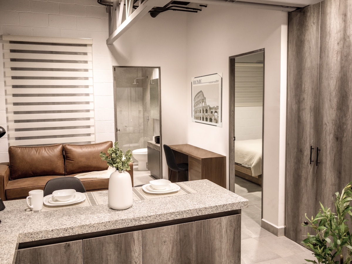 Отличное расположение. Кабельное телевидение, кровать размера «king-size», джакузи, балкон, кухня оборудована магнитной индукционной плитой, микроволновой печью, кофеваркой и кухонной утварью. В нескольких кварталах от стадиона Виктория и Депортиво IV Сентенарио. Рядом с железнодорожным комплексом, где находятся Музей современного искусства, больница Идальго, Grupo Modelo, Teletón и Tres Centurias. Доступ к югу/северу города в 15 минутах. 10 минут от Poliforum Charro. Наслаждайся тем, что есть у Агса. Отдохните и почувствуйте себя как дома.