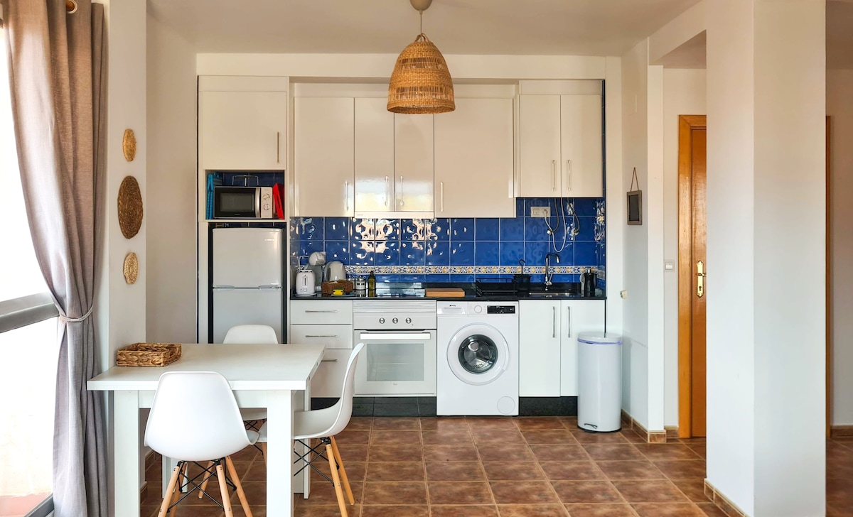 Квартира с 2 спальнями, дополнительной детской кроваткой и ванной для детей. ( Они должны спрашивать, когда бронируют) Расположение в центре Сан-Хуан-де-лос-Террерос. В нескольких шагах от Supermecado, ресторанов, кортов для паделов, рынка, детской площадки, магазина мороженого и медицинского центра. Очень близко к Ла-Геоде. В 10 минутах ходьбы находятся лучшие пляжи в этом районе.