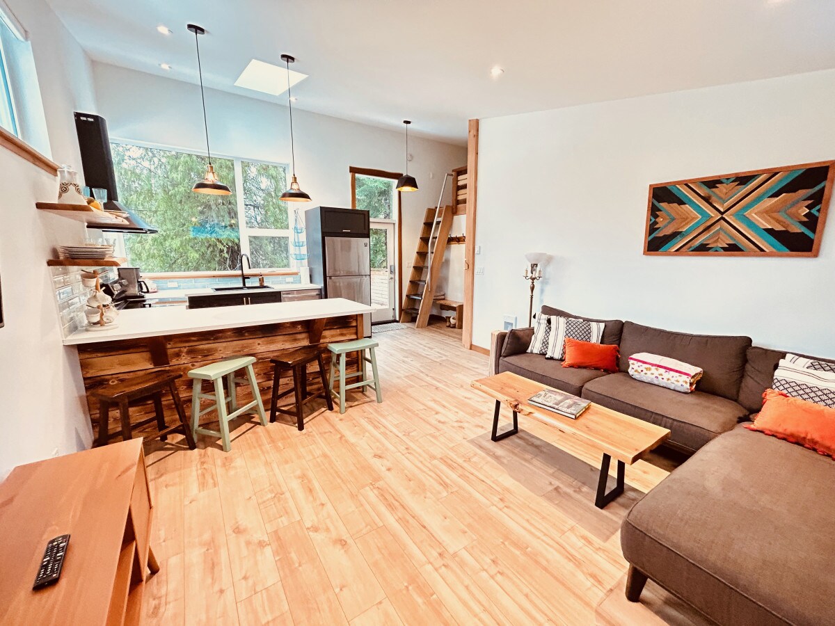 Welcome to Tofino Secret Spot - a cabin located centrally between town and the beaches; a stylish brand new build with all of your beach and tofino needs in mind. Get cozy in the bedroom with a comfortable new mattress. Enjoy a hot tea or coffee provided, and lookout into the forest view in the living room. The unit has a large living room and kitchenette for your lovely stay.