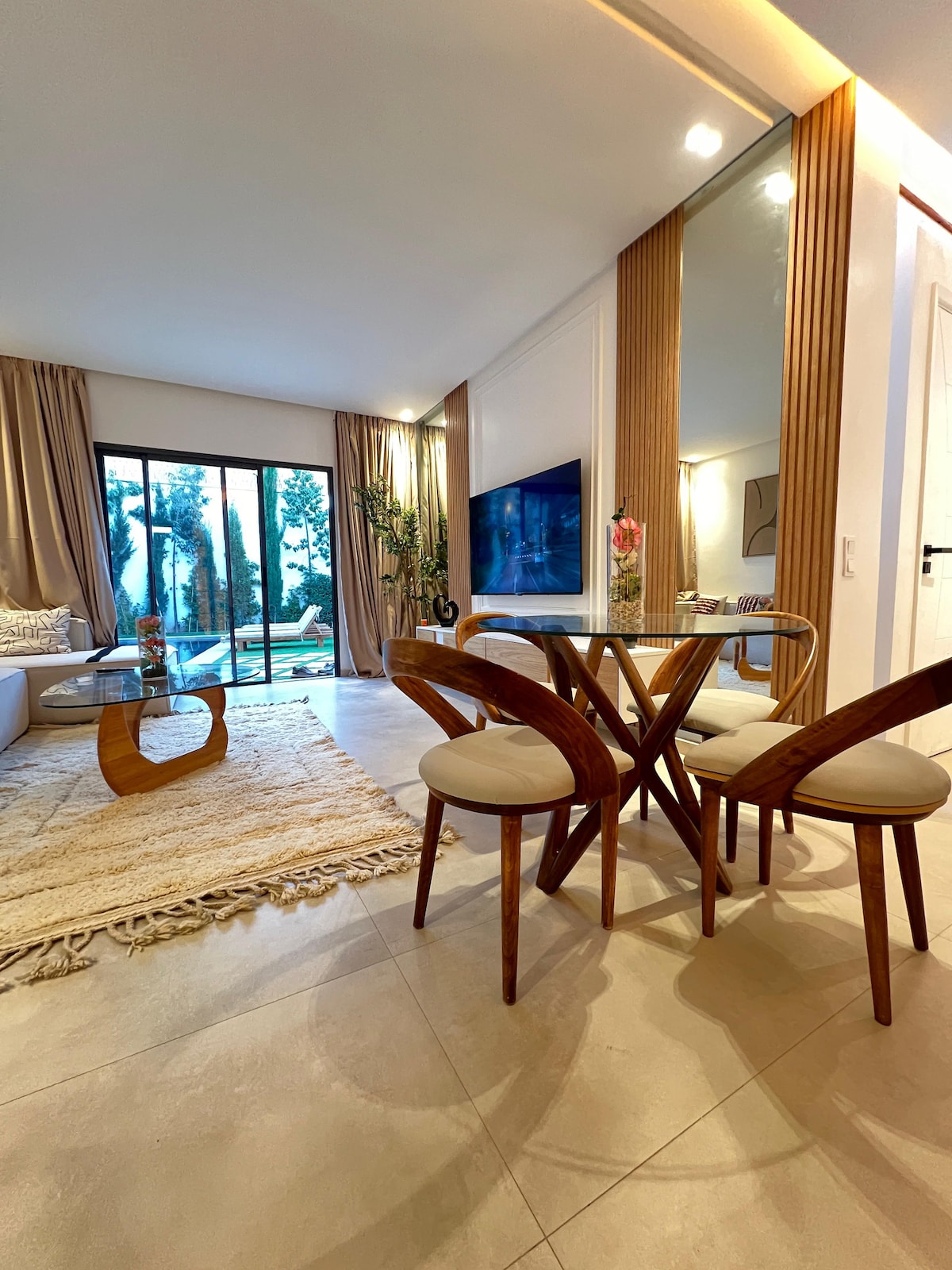 Добро пожаловать в ваш личный оазис в центре Марракеша, тропическую студию, созданную на основе чистой и успокаивающей концепции. Здесь каждая деталь приглашает вас расслабиться, между природой, светом и современным комфортом • небольшой собственный открытый бассейн для отдыха; • Освежающий душ на открытом воздухе, естественная атмосфера. • Тропическая терраса идеально подходит для отдыха или трапезы. • Продуманный декор с натуральными тонами и материалами.