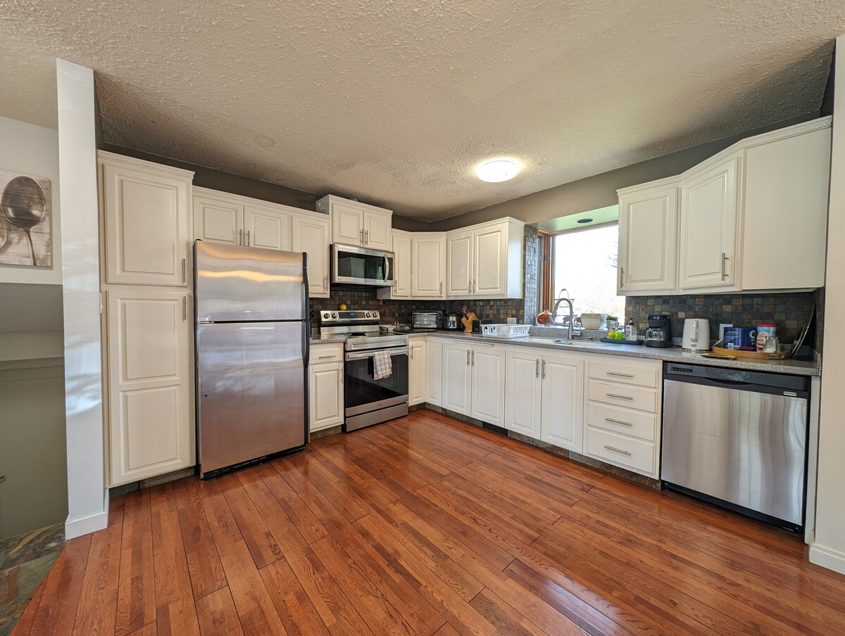 Этот люкс для некурящих, в котором не разрешено проживание с домашними животными, полностью частный, с собственным входом и отдельной парковкой (доступна зарядка электромобиля). Она расположена под нашим домом, так что вы можете иногда слышать легкий звук сверху. Наслаждайтесь хорошо оборудованной кухней, роскошным постельным бельем, быстрым Wi-Fi и солнечными 10-футовыми окнами. Задний двор выходит на канал и пешеходные тропы длиной более 7 км. Рядом с аэропортом Калгари, ресторанами и идеально подходит для однодневных поездок в Скалистые горы; Канмор, Банф, Драмхеллер,