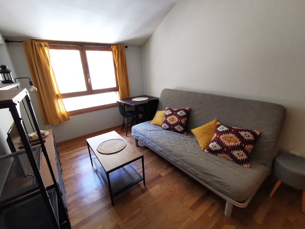 Квартира расположена в горах Canfranc Estación, очень уютная и с прекрасным видом. Он состоит из спальни с двуспальной кроватью, гостиной с диваном-кроватью, кухни и ванной комнаты. В спальне есть тепловые излучатели, а в гостиной - ванная комната и печь с гранулами. Оснащены всем необходимым, чтобы сделать ваше пребывание максимально приятным (постельное белье, детская кроватка, полотенца, фен, кухонные принадлежности, кофеварка, тостер, микроволновая печь, игры...). В урбанизации есть бассейн и игровая площадка.