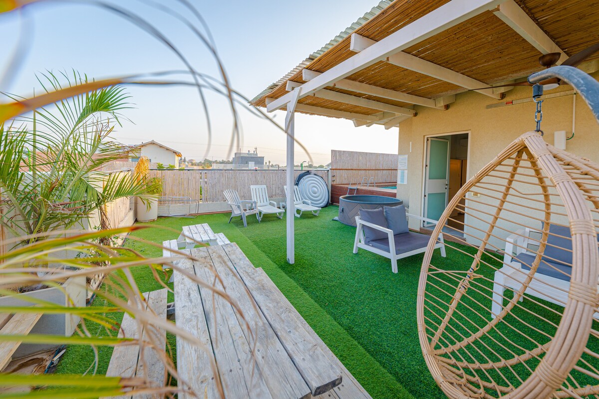 Прекрасная гостевая квартира в Кибуце Хамдии в Долине Спрингс. Небольшая поездка от всех источников и достопримечательностей в долине и примерно в 20 минутах от Галилейского моря На первом этаже есть гостиная с просторным диваном, который раскладывается в еще одну двуспальную кровать, обеденная зона, полностью оборудованная и оборудованная кухня с аква-баром и эспрессо-машиной. Просторный и роскошный душ. На втором этаже спальня с видом на Гильбоа. Уютный и ухоженный частный двор с гостиным уголком. Бесплатная парковка рядом с квартирой. В нескольких шагах находится местный продуктовый магазин.
