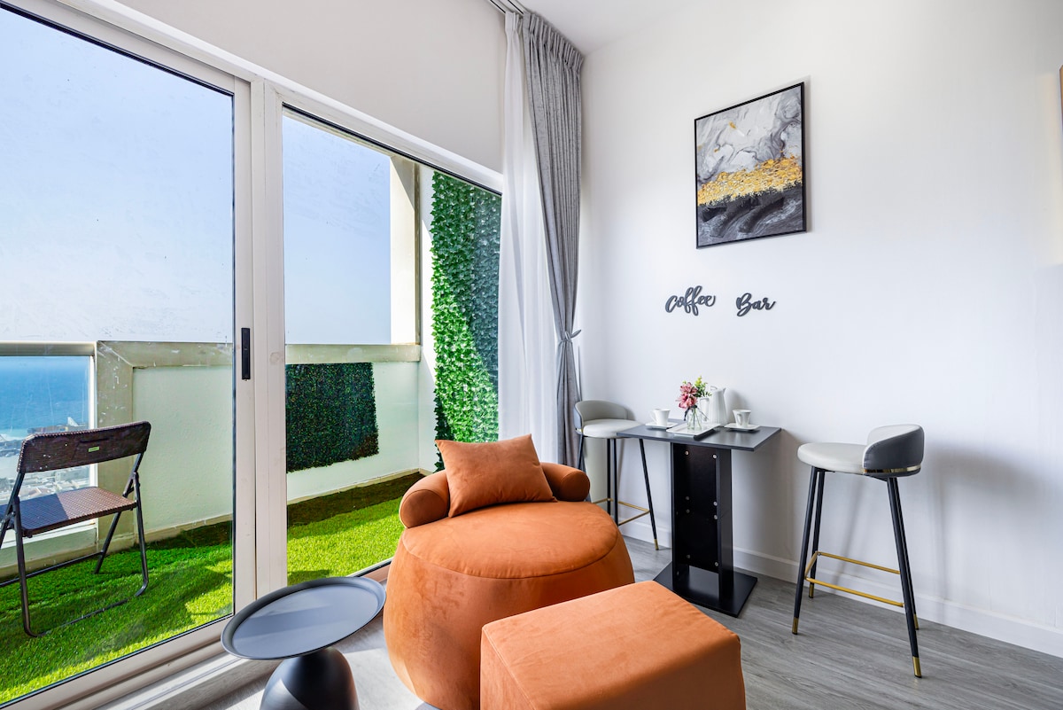 Просторная квартира с 1 спальней и потрясающим видом на море и город. В просторной спальне есть панорамные окна, наполняющие пространство естественным светом. Наслаждайтесь уютной гостиной, отдельным балконом с видом на воду и расслабляющей зоной отдыха у окна. Идеально подходит для пар, одиночных путешественников или деловых гостей, с легким доступом к магазинам, кафе и транспорту.