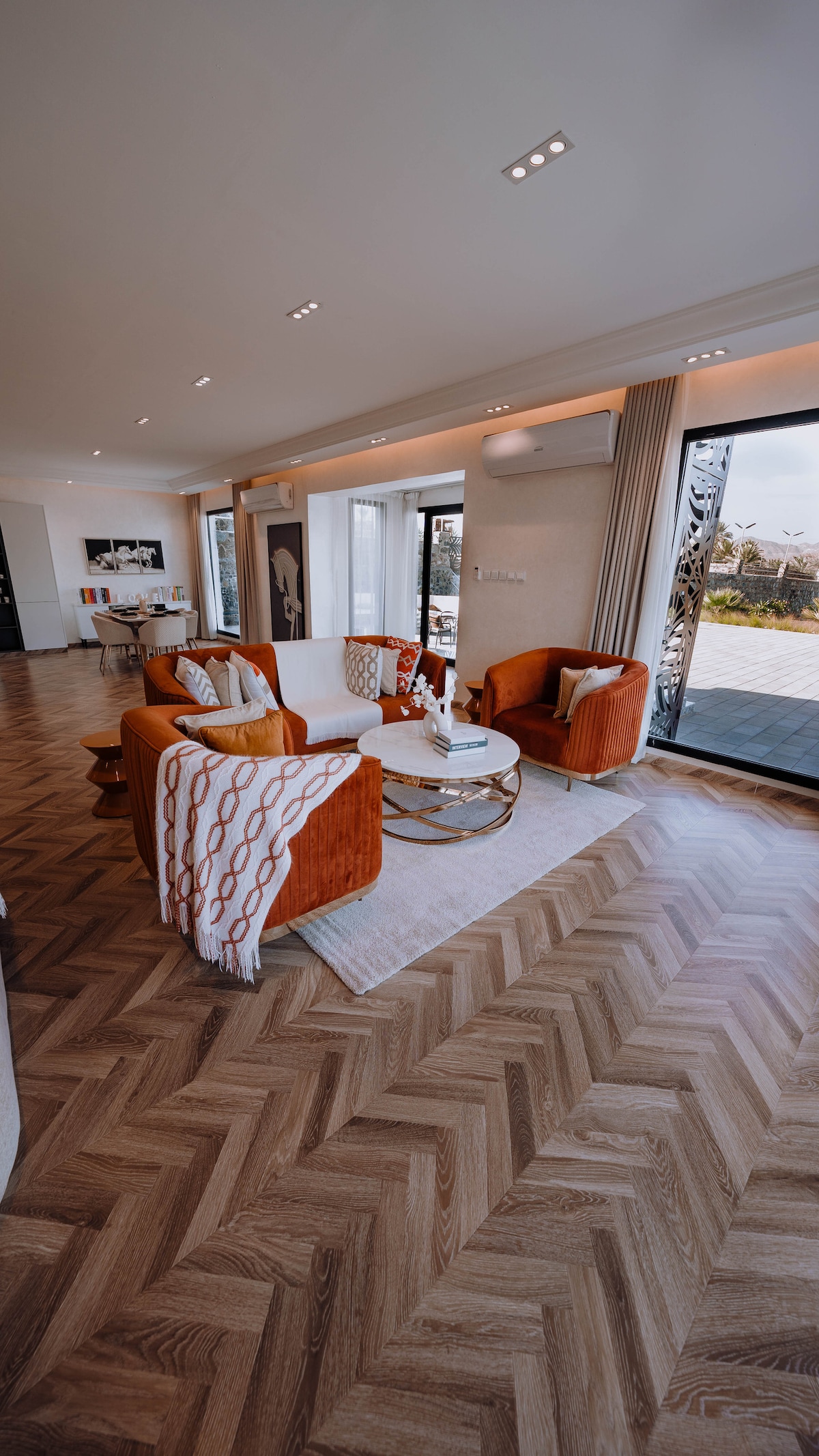 Where Sharjah meets Greece - this unique Santorini-inspired interior design is a true fusion of Mediterranean charm and modern luxury. Nestled in the heart of Sharjah , just a away, you'll find yourself at Zahia City center , as well as 20 minutes by car the mesmerizing Burj Khalifa Fountain Show Large, floor-to-ceiling windows frame breathtaking panoramic views , with a full view of the green garden.