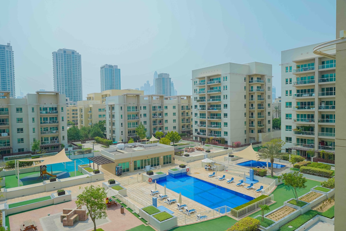 Elegant JVC Apt • Pool View & Circle Mall Park