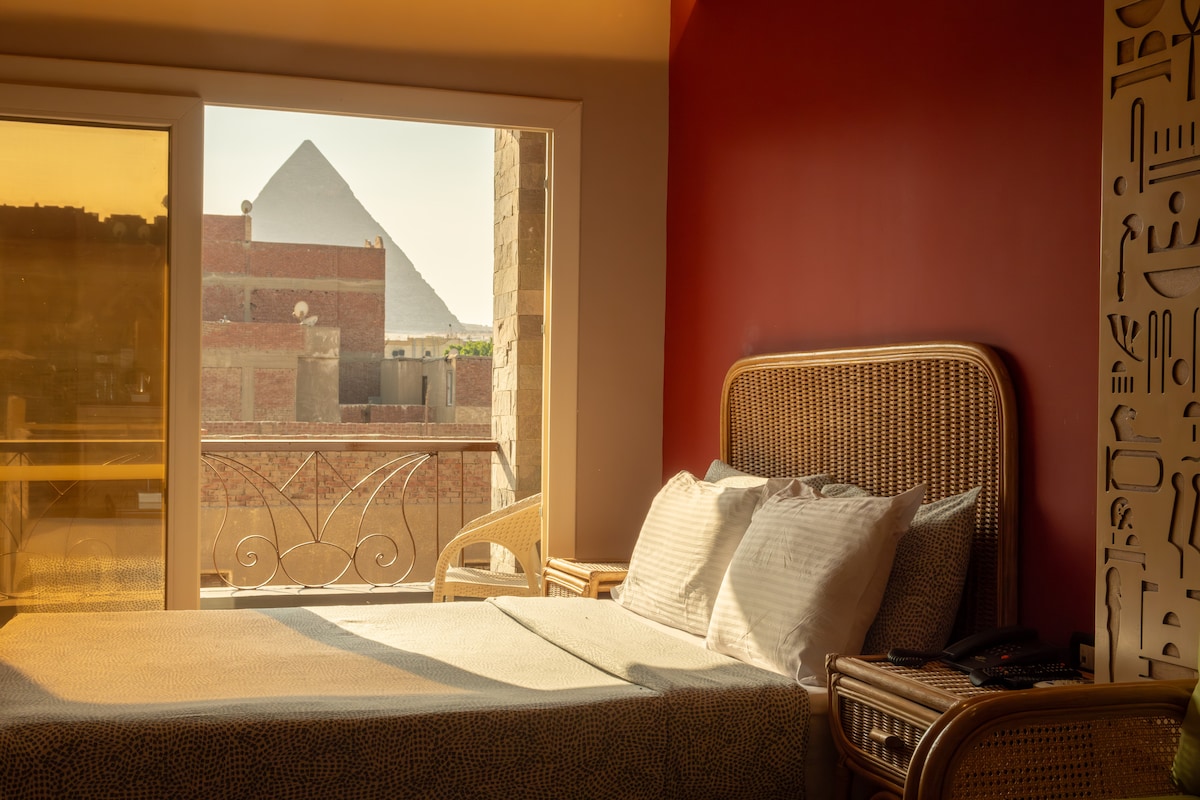 Начните день с потрясающего вида на три пирамиды, в нескольких минутах ходьбы от нового музея. Наши совершенно новые номера, расположенные на 6-м этаже, предлагают современный дизайн и вид на пирамиды! В каждой комнате есть красиво оформленное помещение с двуспальной кроватью размера King size и стандартной кроватью, а также кофеваркой/чайником и бесплатной водой. Как семейный бизнес, мы относимся к каждому гостю как к семье. Каждая комната обеспечивает уединение с собственной ванной комнатой. Откройте для себя близлежащие достопримечательности из нашего центрально расположенного места.