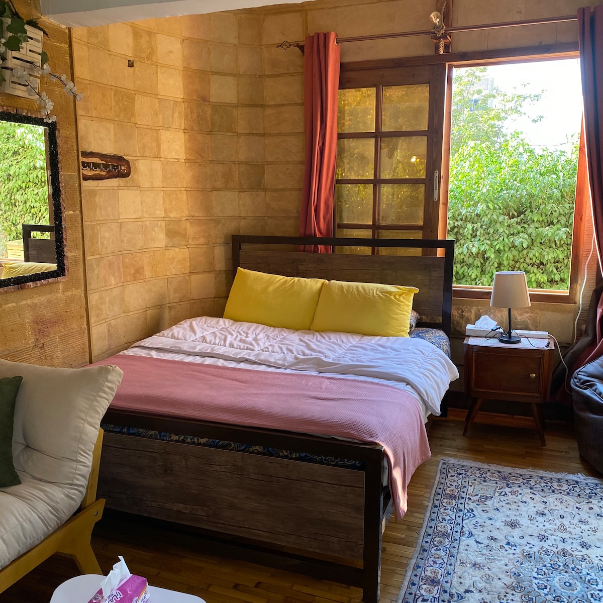 Отдохните в этом сказочном мини-доме в пышном саду в Маади — пешеходном районе Каира, известном своей безопасностью, зеленью и отличными ресторанами. Эта романтическая студия, построенная с учетом принципов экологичности и оформленная с использованием антикварной и винтажной мебели и декора, состоит из спальни с мини-кухней и ванной комнатой, а также рабочего пространства, доступ к которому осуществляется из сада. В волшебном общем саду есть зоны отдыха и обеденные зоны, гамак, уличная кухня с печью для пиццы и фонтан, создающий особое настроение.