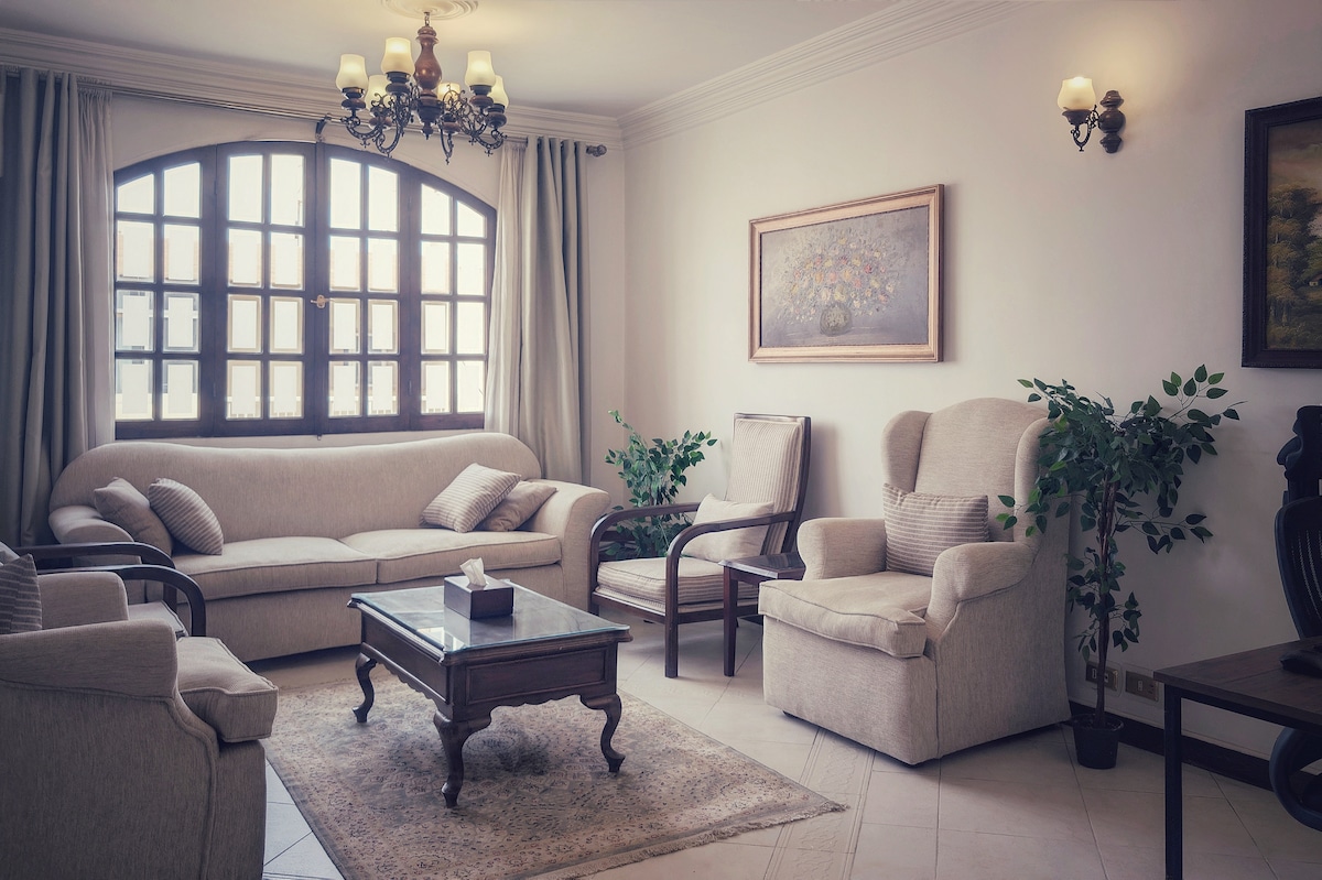 ★ Добро пожаловать в наше любимое место отдыха в центре Шератон Гелиополис! ★ Эта безупречная, полностью отремонтированная квартира с 3 спальнями идеально подходит для семей или деловых путешественников. Всего в 10 минутах от аэропорта Каира, в нем есть полностью оборудованная кухня, стильная гостиная со спутниковым телевидением и 1,5 ванные комнаты для комфорта. Прогуляйтесь до оживленных магазинов и ресторанов или легко доберитесь до основных автомагистралей. Вас ждет спокойная и удобная база в Каире.