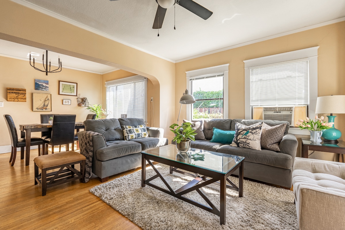 Редкое жилье в лучших, ориентированных на семейное семейное жилье Belmont Heights. Этот дом, расположенный в центре города, находится в нескольких минутах ходьбы от магазинов 2-х улиц, ресторанов, ресторанов и стадиона Colorado Lagoon/Marine Stadium. 3 автомобиля на территории и просторная уличная парковка. Чувствуете себя активным? Есть тренажерный зал и 2 велосипеда, чтобы насладиться популярной велосипедной ванной в центр города/аквариум. Насладитесь вашим утренним кофе на заднем дворике или бокалом вина под теплым светом гирлянд. Работаете? В нескольких минутах от аэропорта LB, LB VA, LB Memorial и St. Mary Hospital.