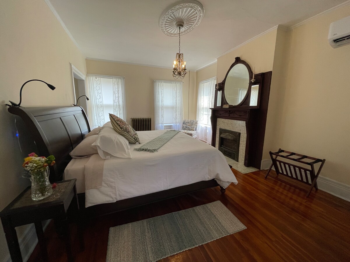 Добро пожаловать в ваш бутик-отель в центре Трои! Эта уютная студия на втором этаже, спроектированная местным художником, расположена в отдельном доме с отдельным входом рядом с причудливой фреской местного художника Кайлы Эк и пышным двором в стиле Нового Орлеана. Всего в нескольких шагах от лучших ресторанов, искусства, ночной жизни и свадебных заведений Трои — и менее чем в квартале от подъезда RPI — эта жемчужина идеально подходит для романтического отдыха, одиночного отдыха или стильного пребывания во время посещения этого района.