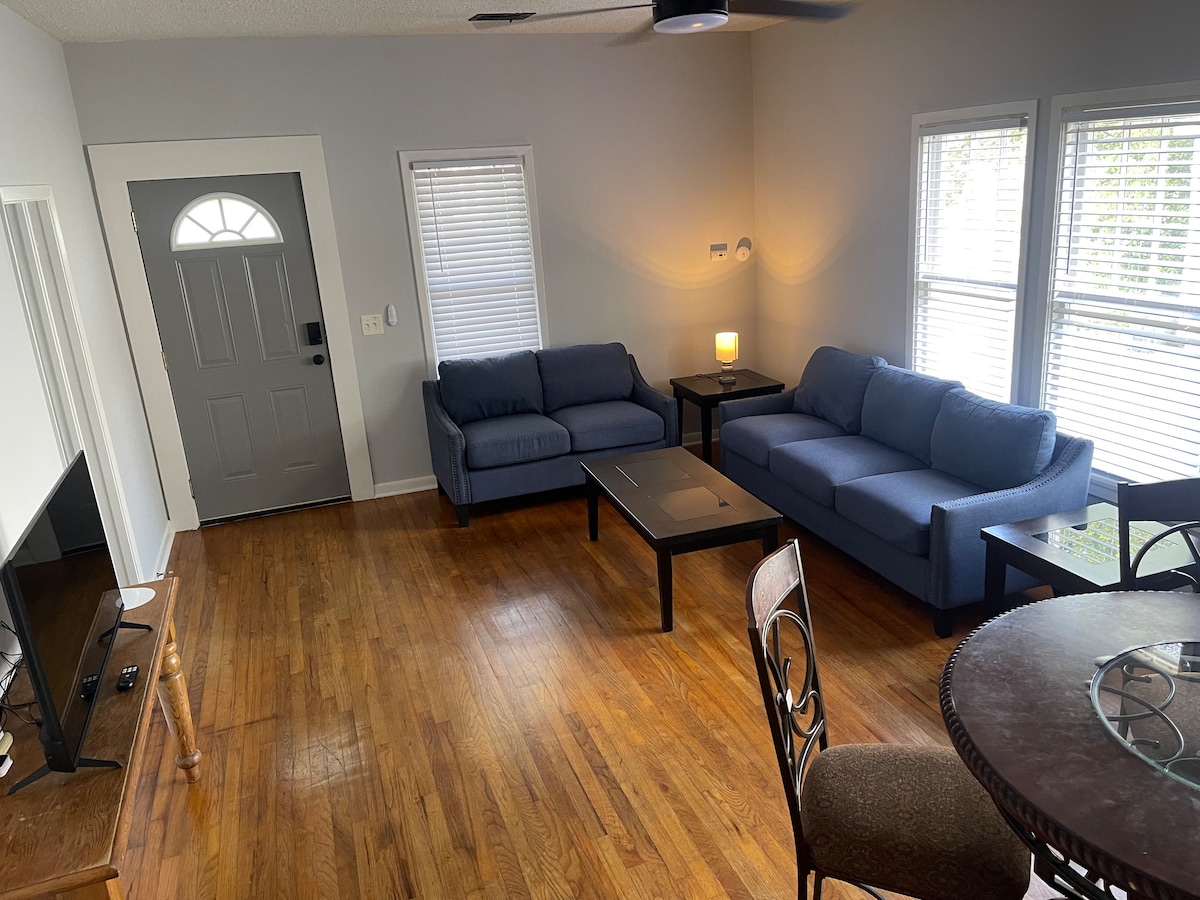 Ваша семья будет рядом со всем, когда вы остановитесь в этом жилье, расположенном в центре города. Добро пожаловать в Blue Hideaway Где можно отдохнуть, расслабиться и восстановить силы в комфорте. Наша прекрасная квартира с 2 спальнями и 1 ванной комнатой оформлена в спокойных голубых тонах, чтобы создать идеальную расслабляющую атмосферу. Наслаждайтесь 55-дюймовыми телевизорами, высокоскоростным Wi-Fi, горячим освежающим душем и ультракомфортабельными кроватями, которые позволяют легко расслабиться после долгого дня. Вас ждет все необходимое для комфортного проживания.