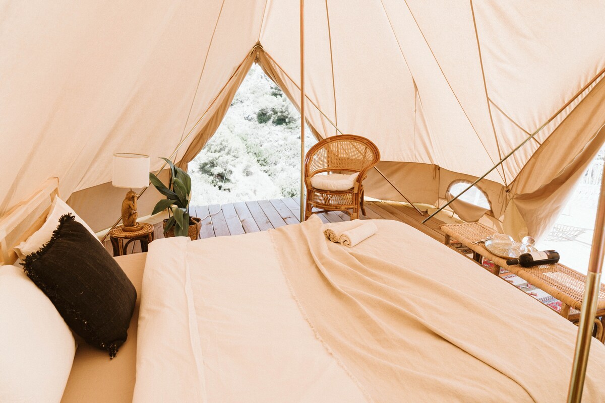 Глэмпинг в палатке с видом на горы и море