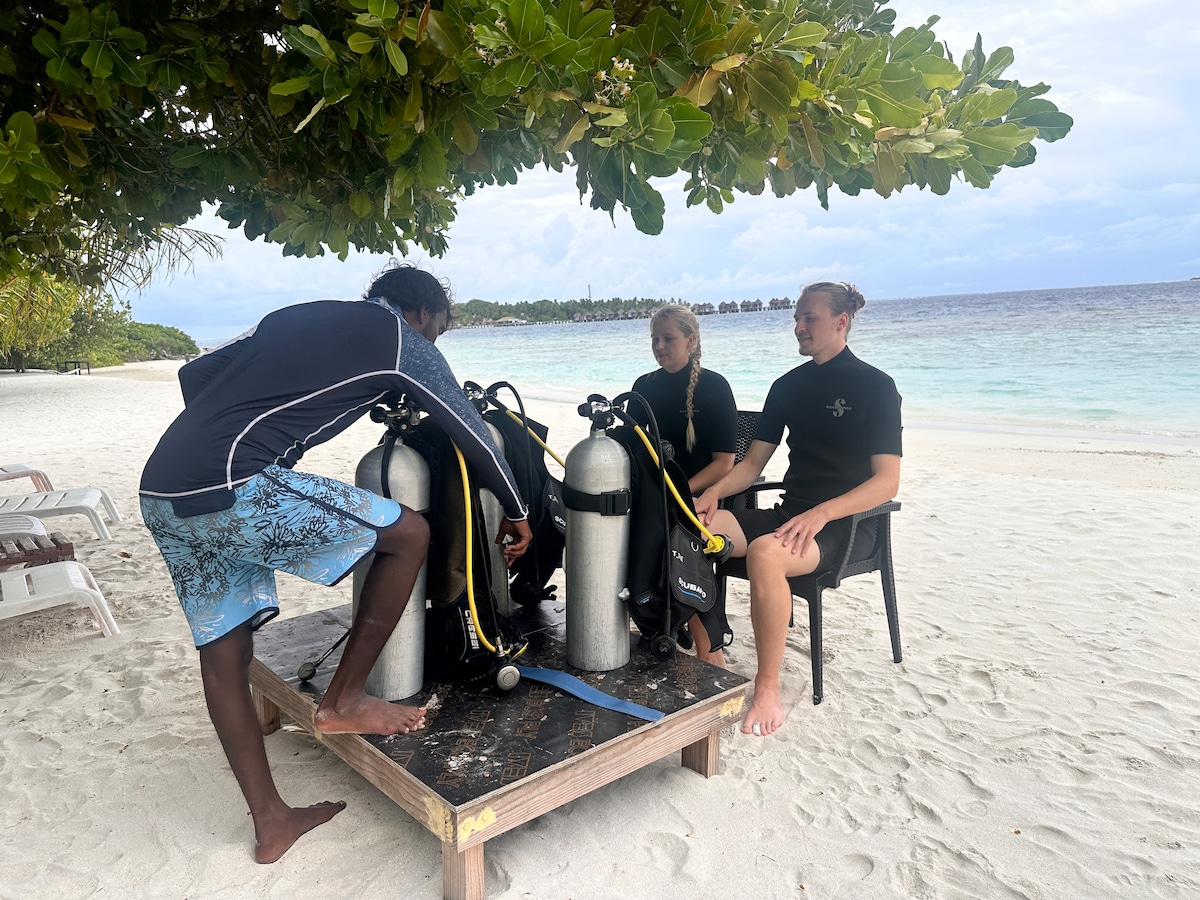 🏝Полностью оборудованная современная вилла с кухней, гостиной, двумя ванными комнатами, обеденной и рабочей зоной, а также зоной отдыха и садом. 🏝Проведите незабываемое время с семьей и друзьями на прекрасном острове Укульяс в Мальдивах. 🏝Вилла находится на тихой и безопасной улице, в 4 минутах ходьбы от пляжа, в 2 минутах ходьбы от гавани, в 1 минуте ходьбы от магазина. 🏝Получите свежую рыбу, отправляйтесь в манту, насладитесь романтическим закатом на песчаном берегу, попробуйте дайвинг - мы организуем для вас все мероприятия