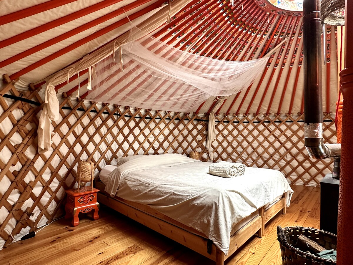 Эта красивая монгольская юрта расположена в Ritmo da Terra, месте отдыха и совместного проживания с несколькими добрыми и преданными жителями. Как следует из названия, Ritmo da Terra возвращает нас к ритму Земли. Таким образом, каждый ретрит, каждый семинар и каждый день — это напоминание о том, что нужно дышать, чувствовать и двигаться более мягко. Это маленький рай на этой планете.