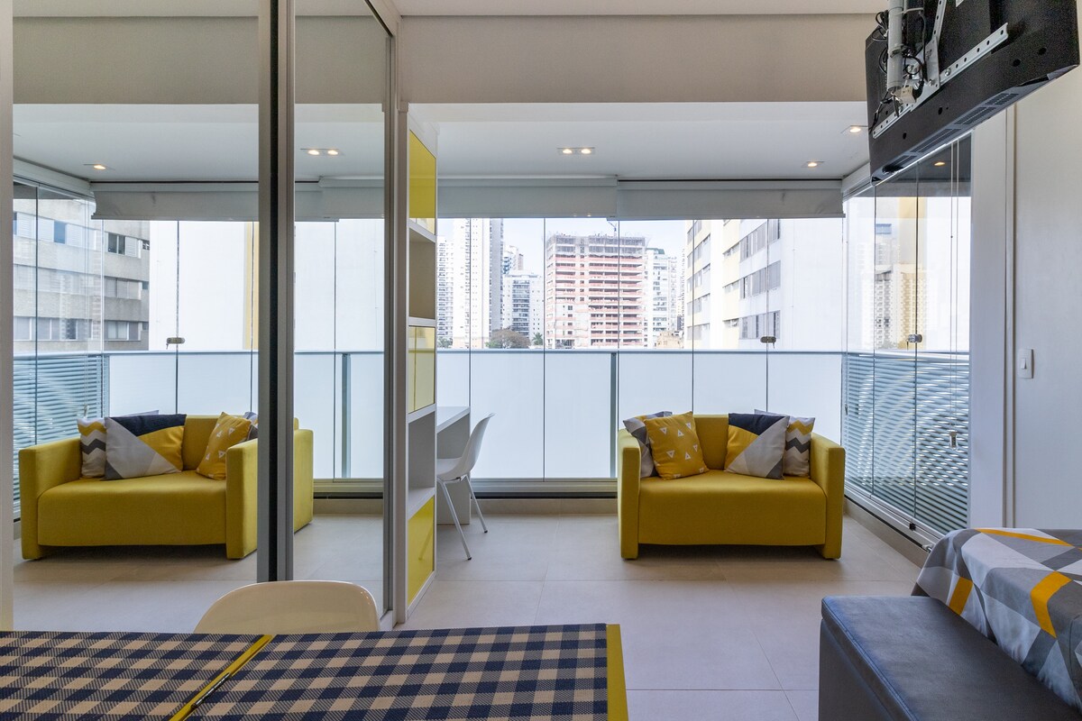 Студия класса люкс на улице Оскара Фрейре Современный, изысканный и полный, на самой знаменитой улице Сан-Паулу с роскошными магазинами. Студия на 24-м этаже, с видом на Ав-Паулиста. Хорошо оборудованный телевизор, 55-дюймовый телевизор, Wi-Fi Vivo Fibra 200, кабельное телевидение, тихий кондиционер, кофеварка, плита и мини-бар, автоматизированная затемняющая штора, портативный испаритель одежды, кухонная утварь, фен, мягкие простыни и полотенца, мыло и шампунь/кондиционер.