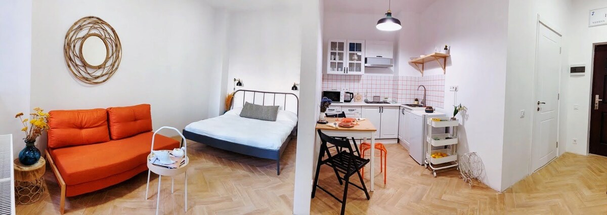 Welcome to our cozy 1 bedroom apartment, located in the heart of the historic old town. Perfect for couples or small families, with an extendible couch in the living room and a fully equipped kitchen. The apartment is bright and homey, with plenty of natural light and a warm atmosphere. You'll love the beautiful balcony, perfect for enjoying a glass of wine or a cup of coffee while taking in the sights and sounds of the city.
