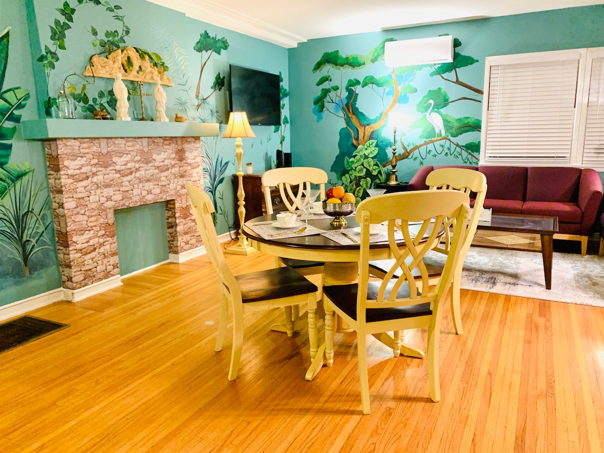 Художник Сэм считает, что искусство может изменить жизнь. Он считает, что каждое жилье Airbnb должно быть уникальным. Сэм модернизировал это историческое здание, построенное в 1940 году. Он лично расписал красивую фреску в тропическом лесу, органично сочетающуюся с пышной зеленью снаружи. В комнате также есть некоторые из его картин. В доме снимали множество небольших фильмов. В пешей доступности находятся итальянские рестораны, Dollar Tree, Starbucks и KFC.