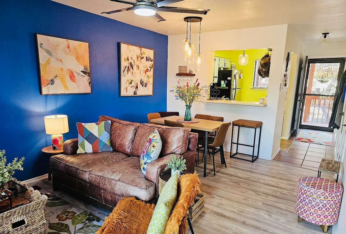 Светлый и уютный отремонтированный минималистский дом с одной двуспальной кроватью размера Queen size, одним диваном-кроватью размера Queen size и двумя полноразмерными парковочными местами. Эта маленькая жемчужина расположена в центре Руидозо с ресторанами и историческими магазинами и барами в центре города в нескольких минутах ходьбы! Прогуляйтесь до близлежащего парка или в 8 минутах езды от казино Inn of the Mountain Gods или до ипподрома Billy the Kid и казино. Это жилье действительно расположено в центре города и оборудовано всем необходимым для вашего пребывания.