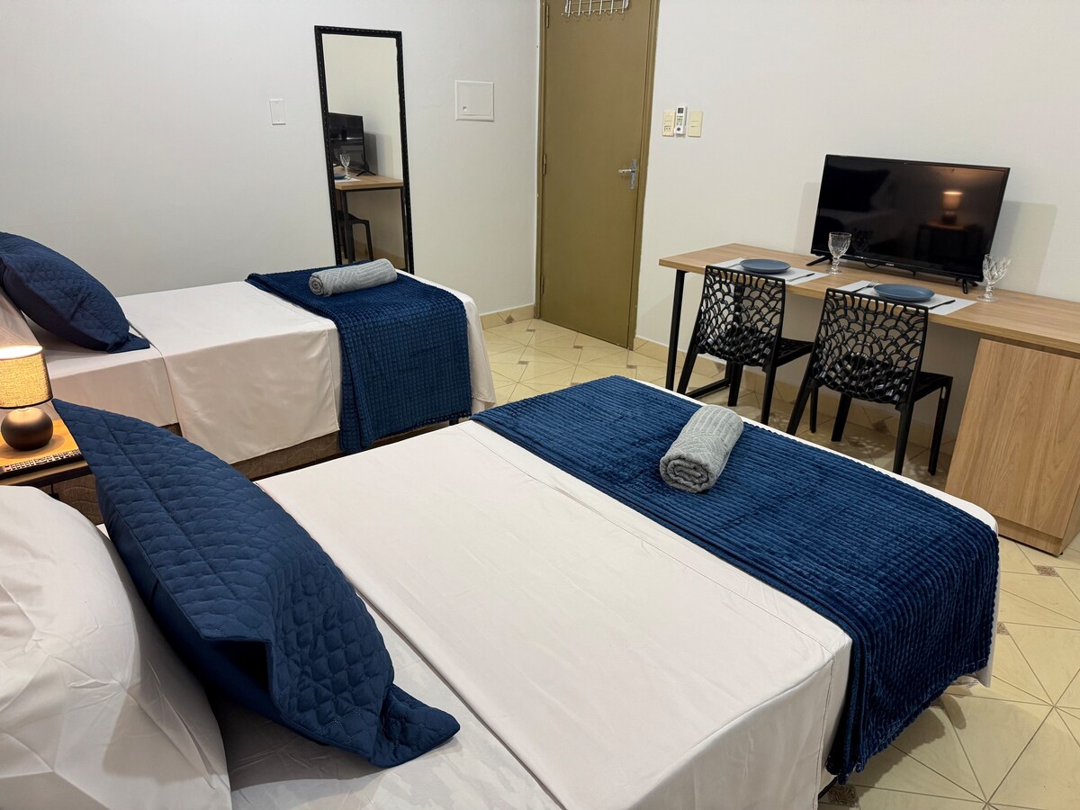 Квартира расположена в центре Сьюдад-дель-Эсте, в лучшей точке города, в нескольких минутах от вкусных ресторанов, магазинов и торговых центров. Отсюда вы сможете насладиться лучшими видами, его зданиями и зелеными пейзажами. Если вы приезжаете в город по делам или для удовольствия, эта квартира - идеальное жилье - идеальное жилье. Забронируйте жилье сегодня и познакомьтесь с лучшим, что может предложить Сьюдад-дель-Эсте!