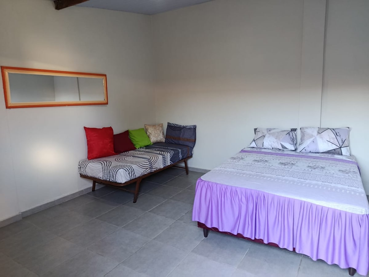 Ваша семья будет рядом со всем, когда вы остановитесь в этом жилье в центре города. Двухместный номер с двуспальной кроватью размера King size и собственной ванной комнатой. В общих помещениях есть бассейн, барбекю и гостиная с двумя столами, столовыми приборами, дисплеями для хранения напитков, холодной и натуральной водой, кабельным телевидением и гамаком, доступными для гостей круглосуточно.