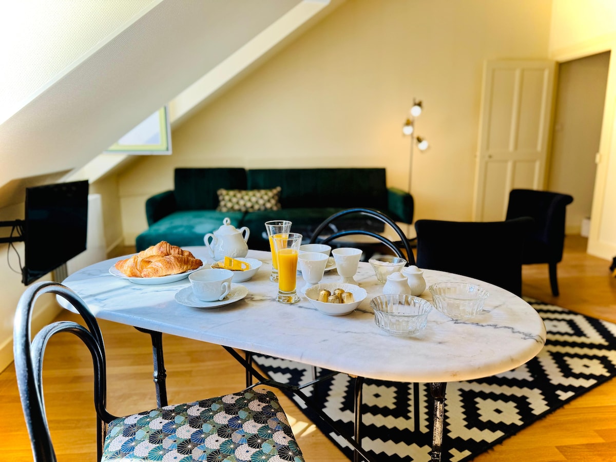 Бывший таунхаус с видом на Королевский замок, полностью отремонтированный весной 2023 года и расположенный в центре исторического центра (1 минута ходьбы до магазинов Rue Nationale и 4 минуты до Королевского замка). Увлеченные историей, мы спроектировали Logis Ambacia, чтобы подарить вам уникальные впечатления, открыть для себя события и прославленные персонажи, которые сформировали историю Амбуаза. Обратите внимание, что маленькие и старые любопытные люди!