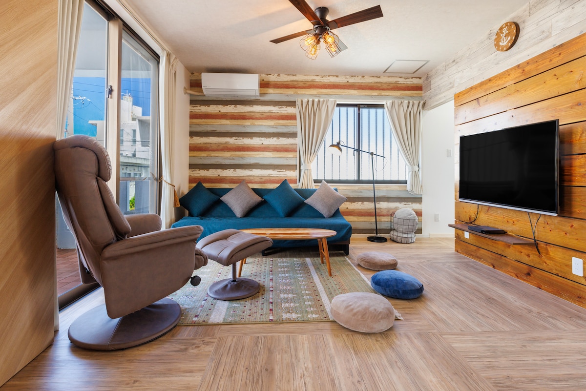 好立地ステイ!ビーチ目の前!アメリカンヴィレッジ車3分/北谷中心地/最大7名宿泊OK