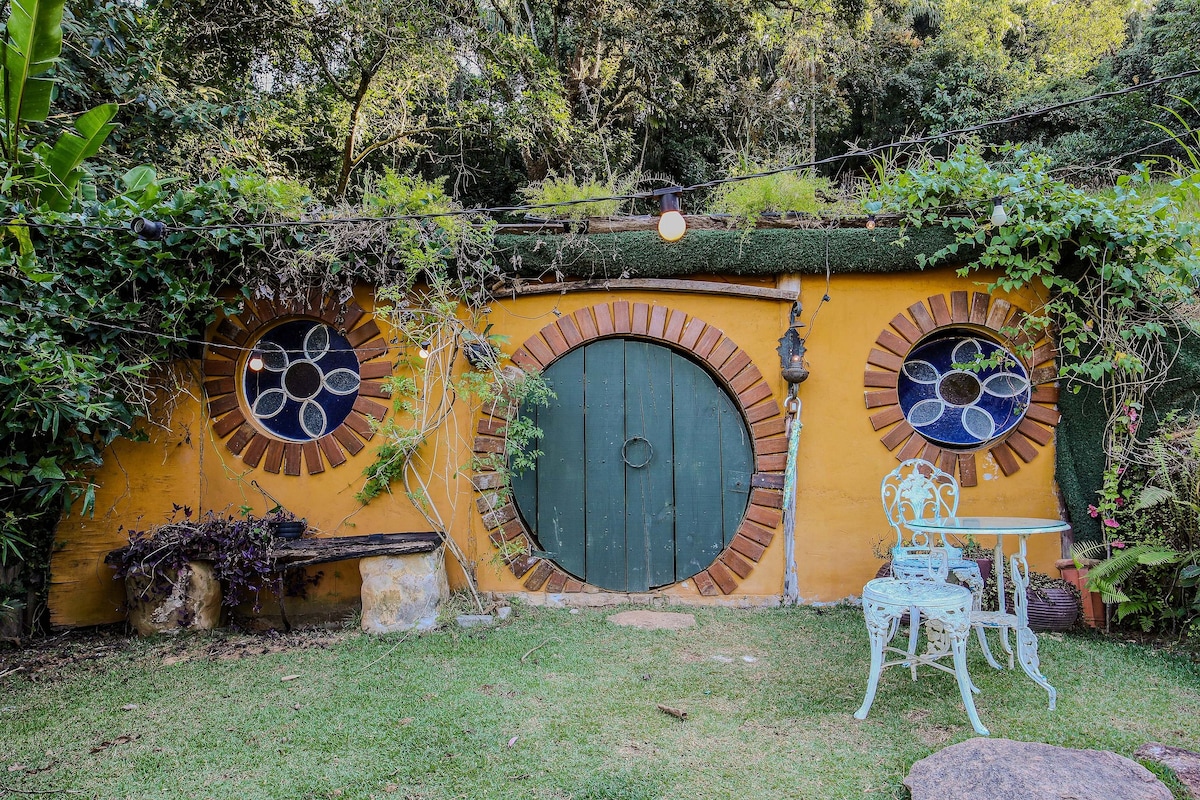 Venha desfrutar de descanso, natureza e paz na exclusiva casa dos Hobbits. - Cachoeira, Piscina, churrasqueira - Lago com peixes mansos (alimente nossas carpas!) - Caiaques e Prancha de Stand-up - Escorregador no Lago - Balanço - Árvores frutíferas - Fogo de chão. * Todos os atrativos são gratuitos e exclusivos para os hóspedes* * Aqui habitam insetos e pequenos bichos* * As cabanas possuem banheiro privativo e chuveiro quente*