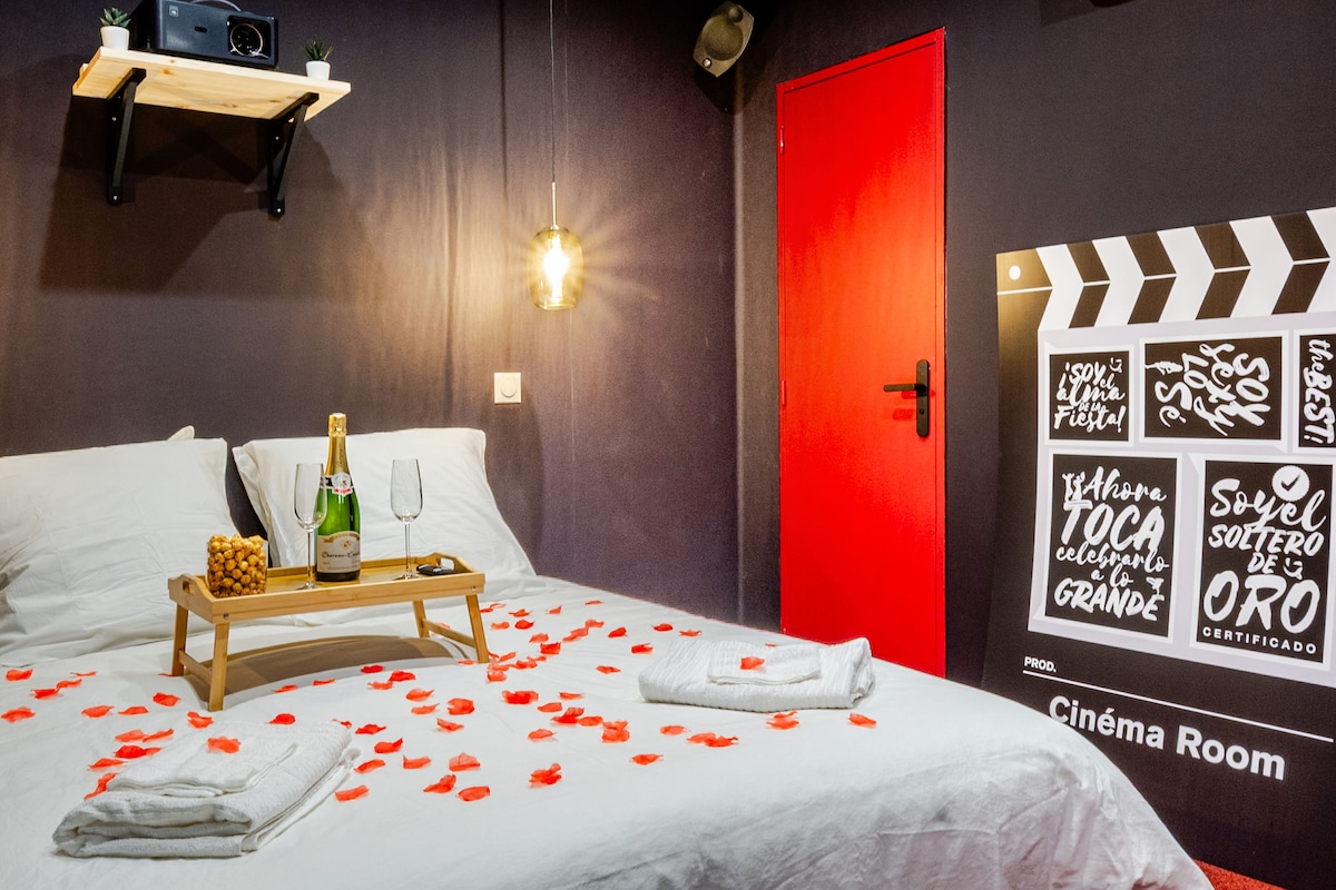 ✨ Побалуйте себя необычными впечатлениями в Ниме в нашем частном кинотеатре! Наслаждайтесь большим экраном с проектором и захватывающим звуком для незабываемых вечеров кино. Сочетание комфорта и оригинальности в современном пространстве, предназначенном для отдыха. Идеально подходит для романтического отдыха, проживания с друзьями или уникального момента после изучения арен и исторического центра. 🎬🍿 Пакет «Романтический» и пакет «Бранч-бокс» предоставляются по запросу и при наличии 💫❤️