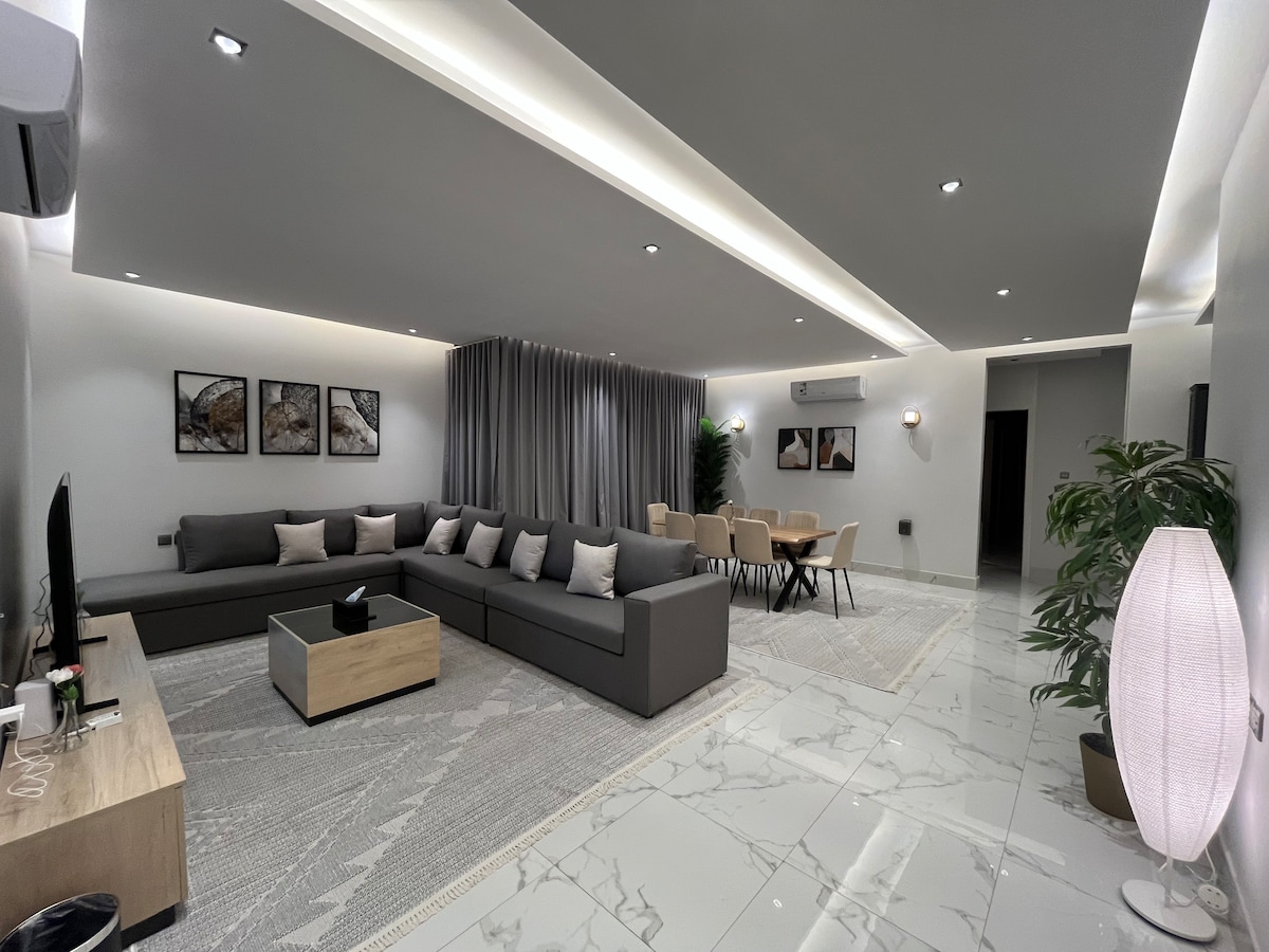 Просторная и элегантная студия в уникальном месте в районе Аль-Мугарразат, к северу от Эр-Рияда, в 3 минутах от торгового центра Al-Nakheel, в 17 минутах от аэропорта, в 10 минутах от Университета Имама, в 14 минутах от Университета короля Сауда, напротив многих министерств и многих туристических объектов... Оформлена в уютных тонах, обставлена современной мебелью. Он состоит из главной спальни, бокового сеанса и полноценного кофейного и чайного уголка и имеет свое расположение в самых престижных районах Эр-Рияда , его просторный район и отличительный декор, а также полное уединение с умным входом. Хорошего отдыха, и Бог благословит моего гостя .