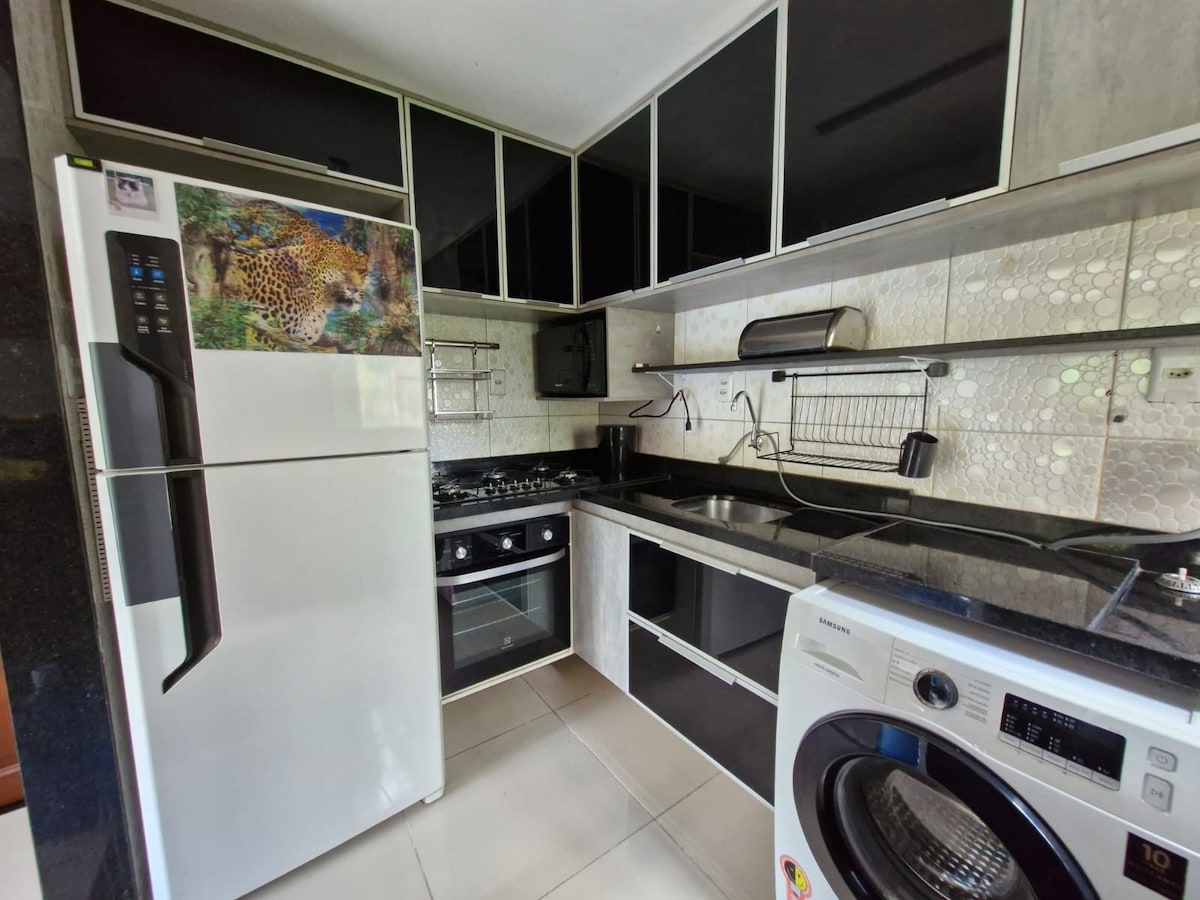 Apartamento completo e ideal para famílias ou pequenos grupos de trabalho devido ter muitas camas. Entre os diferenciais estão a TV de 55” com Netflix e SKY, cozinha totalmente equipada e estrutura de lazer no condomínio, com piscina, quadra e espaço kids com parquinho. Além disso, a localização é prática, a apenas 1 km do Parque Vila Maguary, perfeito para passeios e lazer.