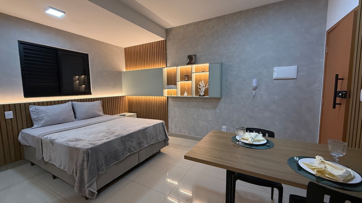 Подготовьтесь к тому, что вас очарует высшая изысканность этого выдающегося лофта в Анаполисе, где каждая мелочь, от современной техники до кровати , обеспечивает уникальные впечатления! В нашем жилье могут разместиться до 4 человек. К услугам гостей двуспальная кровать размера King size и двуспальный диван-кровать. Мы находимся в нескольких метрах от больницы Anima, от UniEvangélica, и мы готовы встретить вас со всем комфортом.