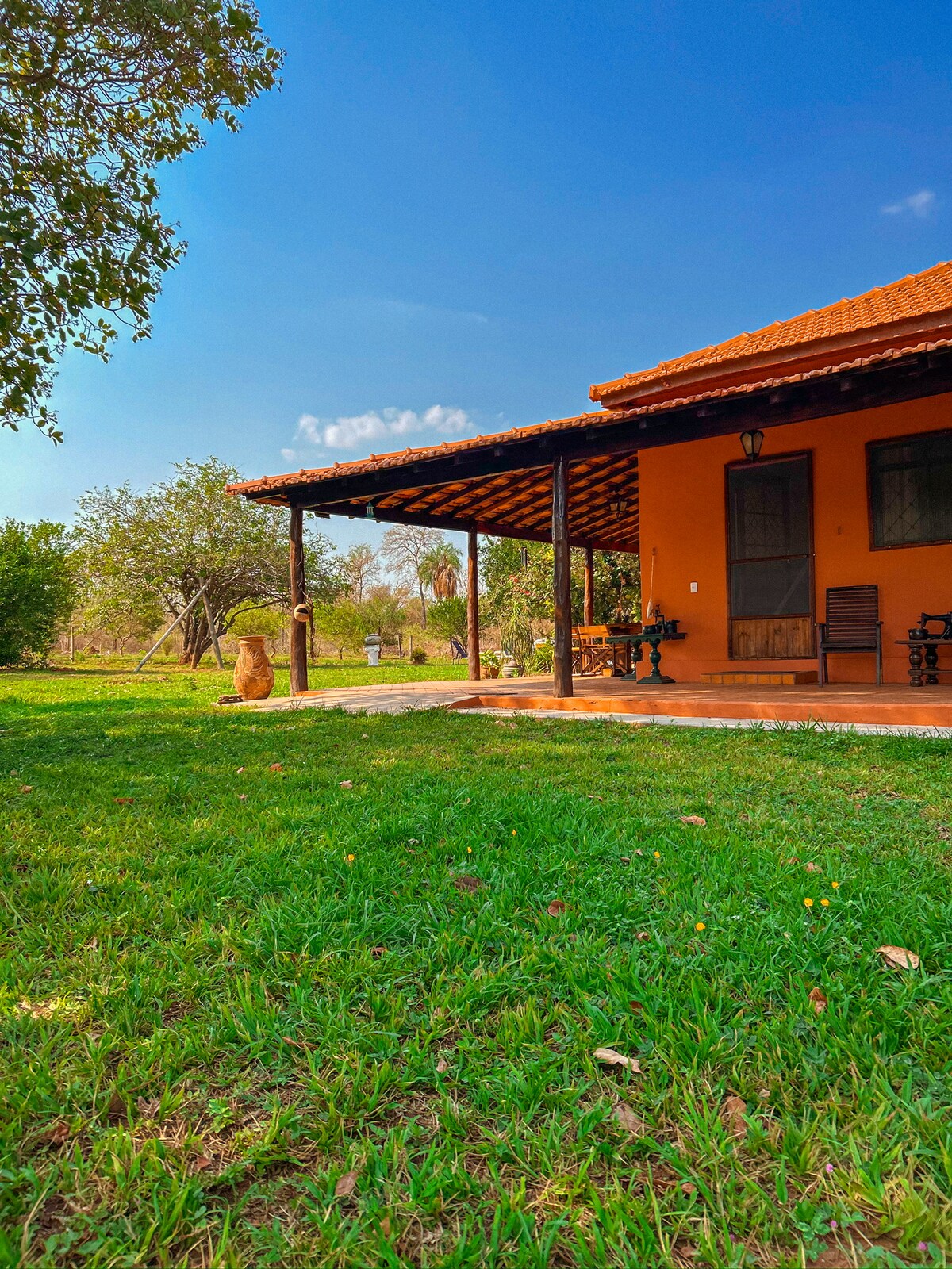 Ищете расслабляющий отдых на природе? У меня есть ИДЕАЛЬНОЕ жилье для вас! Ферма расположена в районе Палмейрас/MS, в 1 часе езды от Кампо-Гранде и в 18 минутах езды от Пирапуранги. Здесь есть большой, уютный и комфортный дом. На открытом воздухе есть полностью оборудованное пространство для гурманов, бассейн, идеально подходящий для жарких дней, и, конечно, гамаки для отдыха во время чтения хорошей книги или потяги вина. Серьезно, не хотите уезжать!