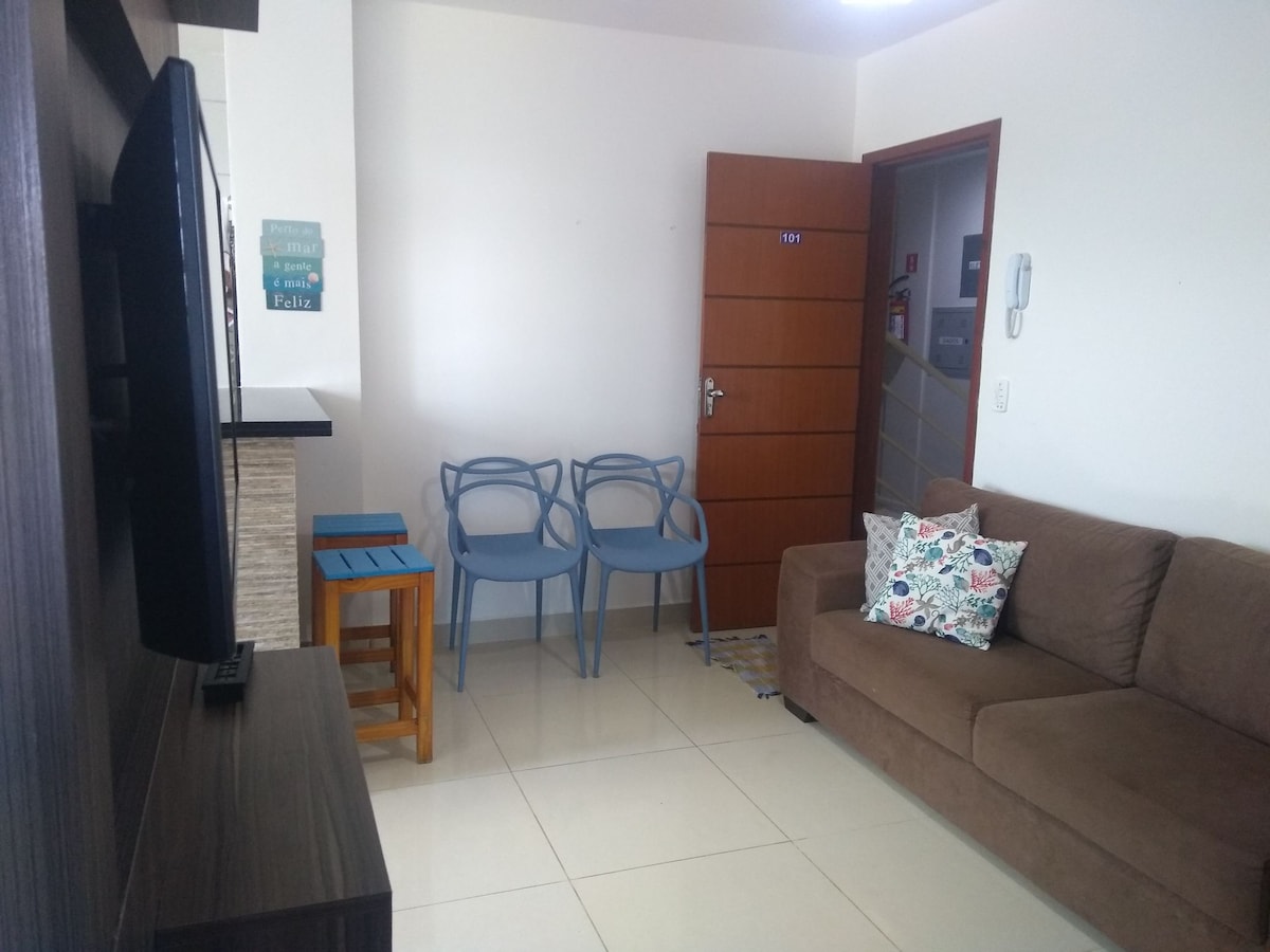Наслаждайтесь элегантными впечатлениями в этом квартире. Расположена в 800 метрах от центрального пляжа Анчиета, в 2,5 км от пляжа Кастельянос и пляжа Бока-да-Балея, в 4 км от курорта Ирири и Убу, в 8 км от Пьюмы. В центральном регионе Анчиета, недалеко от супермаркетов, ресторанов и медицинских учреждений. Современное жилье, уютное и стильное. Безопасный кондоминиум и бесплатная парковка для 02 автомобилей.