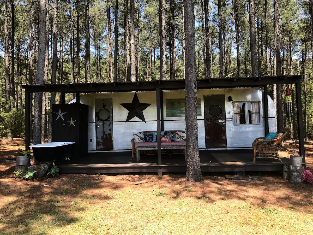 Peaceful Retreat — полностью отреставрированный винтажный автодом 30' расположен на частной семейной ферме площадью 5 акров. 25 минут от Клемсона, в нескольких минутах езды от гор и общественного доступа к озеру Киоуи. Отдельная спальня. Вся бытовая техника, посуда, открытый гриль, терраса, патио, дровяной костер на открытом воздухе (включая дрова) и личные удобства. В окружении леса с обилием дикой природы. 4 сезона с кондиционером и отоплением. Отличная возможность насладиться кемпингом, близлежащими озерами и горным регионом.