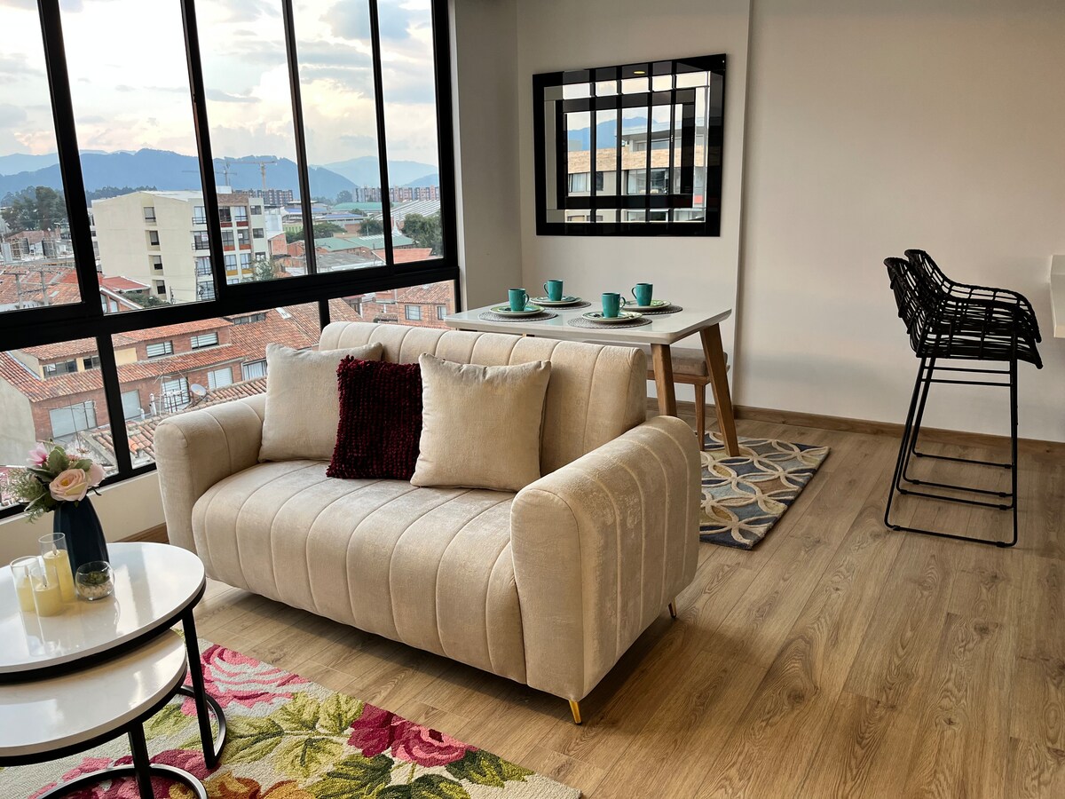 Элегантная квартира-студия в здании Solar Chía. Меблированная, современная отделка, оборудованная кухня, телевизор, Wi-Fi. Удобные зоны общего пользования: терраса, барбекю, тренажерный зал, коворкинг, кинозал, мини-гольф, бильярд, видеонаблюдение, парковка. Отличное расположение недалеко от Университета Ла-Сабаны, Centro Chia и Fontanar.