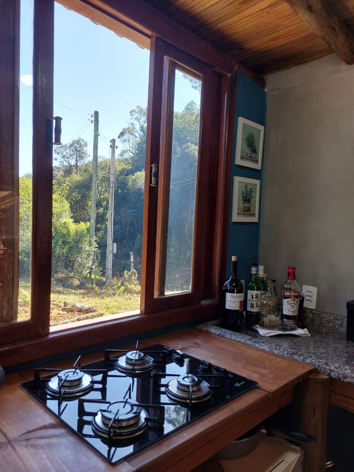 Рядом с SERRA DO RIO DO RASTRO. Из хижины открывается «зеленый» вид со всех сторон. Ванна находится под навесом и полностью интегрирована с природой, она похожа на пребывание в лесу, но с комфортом и безопасностью пребывания в помещении. Жилье довольно уединенное и тихое, кроме пения птиц. В дождливые дни стеклянный потолок приближается к контакту и ощущению расслабления. На всех газовых кранах есть горячая вода.