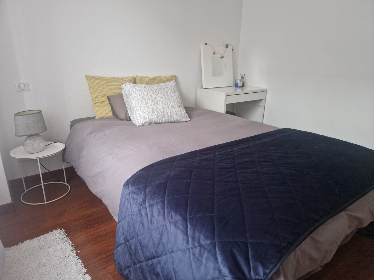 Рядом с центром Анси и его озером, в таунхаусе, на первом этаже, квартира площадью 84 кв. м с оборудованной кухней, душевой кабиной, двухместной гостиной с камином, лоджией, двумя спальнями. Возможность размещения 2 дополнительных кроватей (дополнительные кровати). Большой сад. Бесплатная уличная парковка. Квартира с оптоволоконным кабелем Велосипеды.
