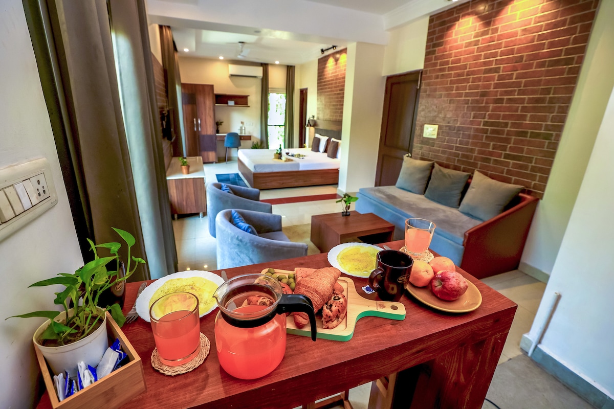 Welcome to our cozy penthouse on the second floor, with private entry and a charming patio. The home offers 2 air-conditioned bedrooms, each with a King bed, 2 bathrooms (one attached, one in the living room), a kitchen with RO water filter, and a small common area with a refrigerator. High-speed Airtel Wi-Fi and a work desk are also provided. Please note: If booking for 1-2 guests, 1 bedroom and bathroom will remain closed for a more tailored experience.