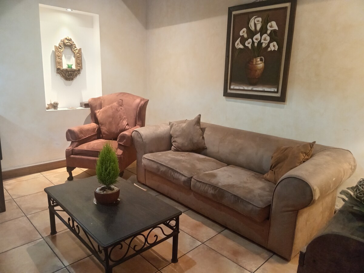 Эта квартира представляет собой современную концепцию, с колониальной отделкой снаружи и современным прикосновением внутри, чтобы гости имели пребывание, как никогда ранее в колониальном городе. Он расположен в эксклюзивной зоне, в 4 кварталах от центрального парка Антигуа Гватемала, идеально подходит для прогулок и знакомства с культурой города. В квартире есть Wi-Fi, смарт-телевизор, горячая вода, бесплатная парковка и многое другое. С удовольствием обслужим вас и проведем незабываемый вечер.