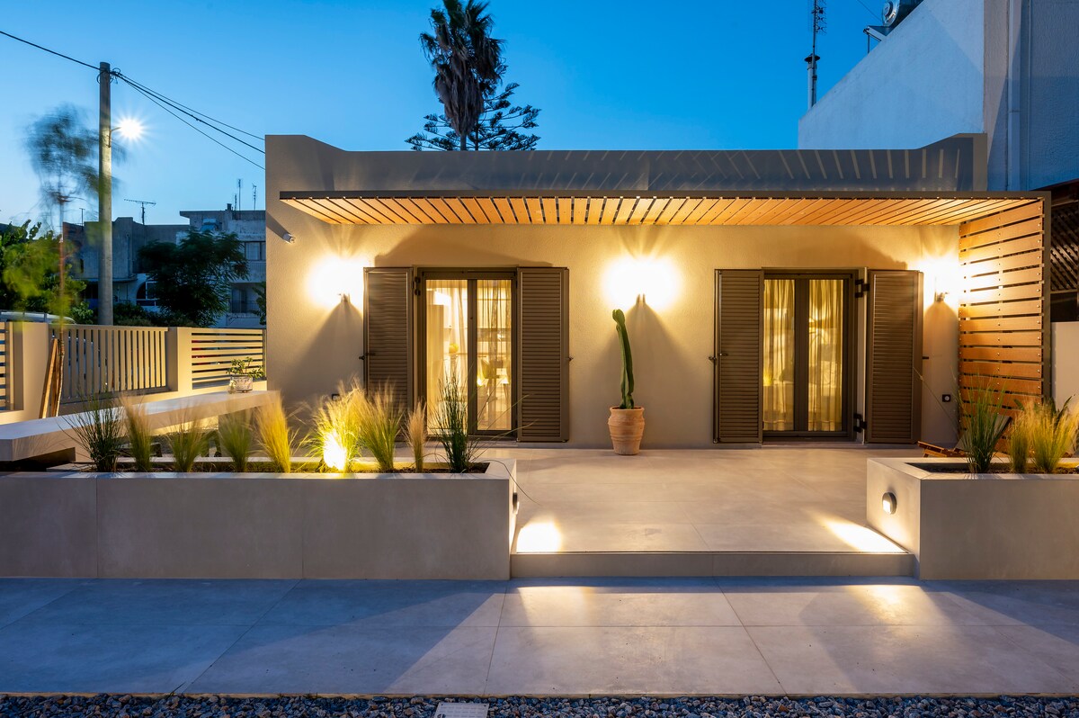 Удобное, солнечное и стильное место, чтобы насладиться отдыхом! Дом расположен на первом этаже и предоставляет все необходимые удобства. Вид на гору с правой стороны, море с левой стороны и общественный парк/парковка спереди - идеальный пейзаж. Жилье расположено на побережье Кос (район Мармари), всего в 3 минутах ходьбы от песчаного пляжа, в 1 минуте от автобусной остановки и в 20 минутах езды от центра города Кос. У вас также есть собственный балкон с видом на сад. Наслаждайтесь!