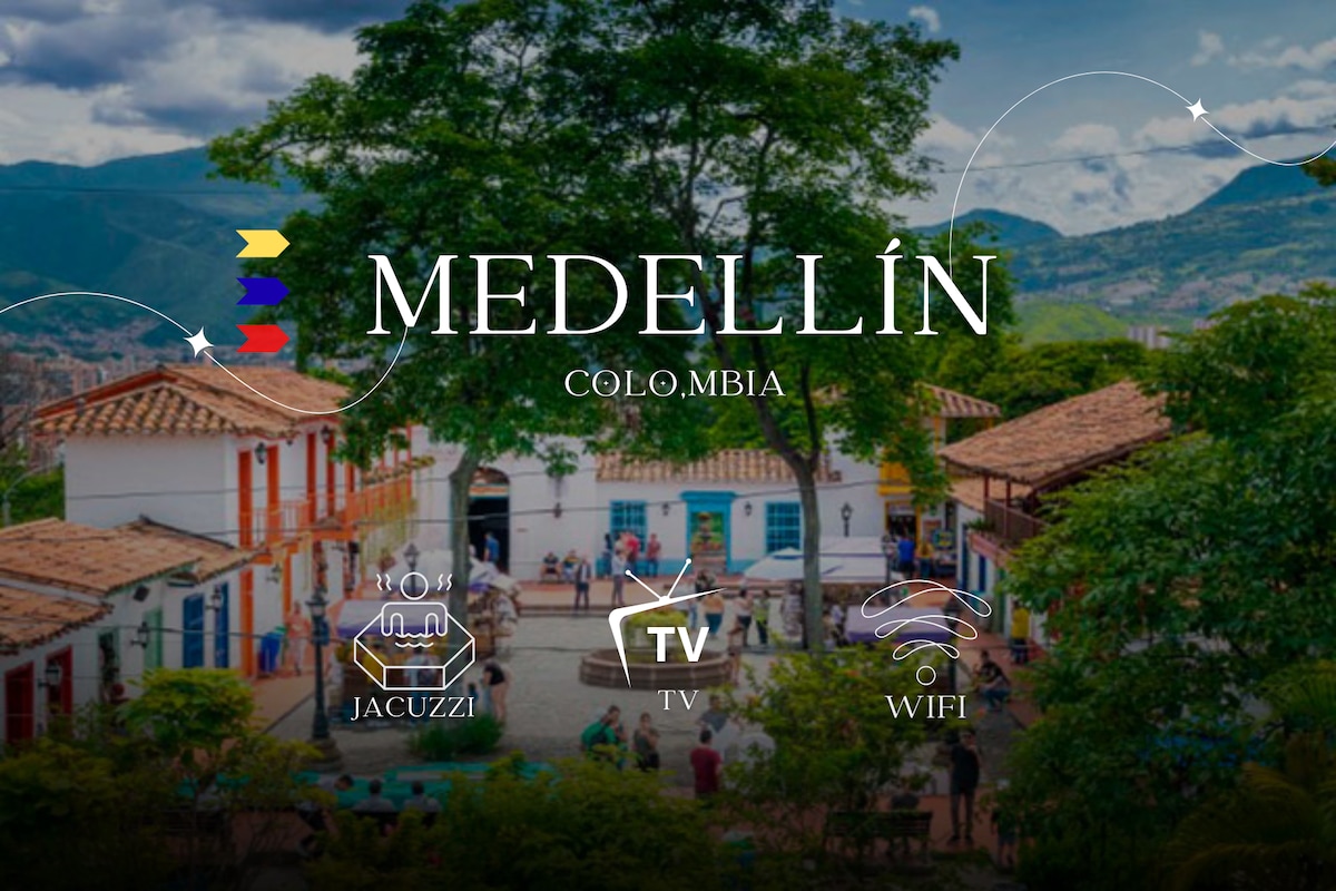 Комната+Wi-Fi+джакузи+телевизор+прачечная+рабочая зона в Медельине