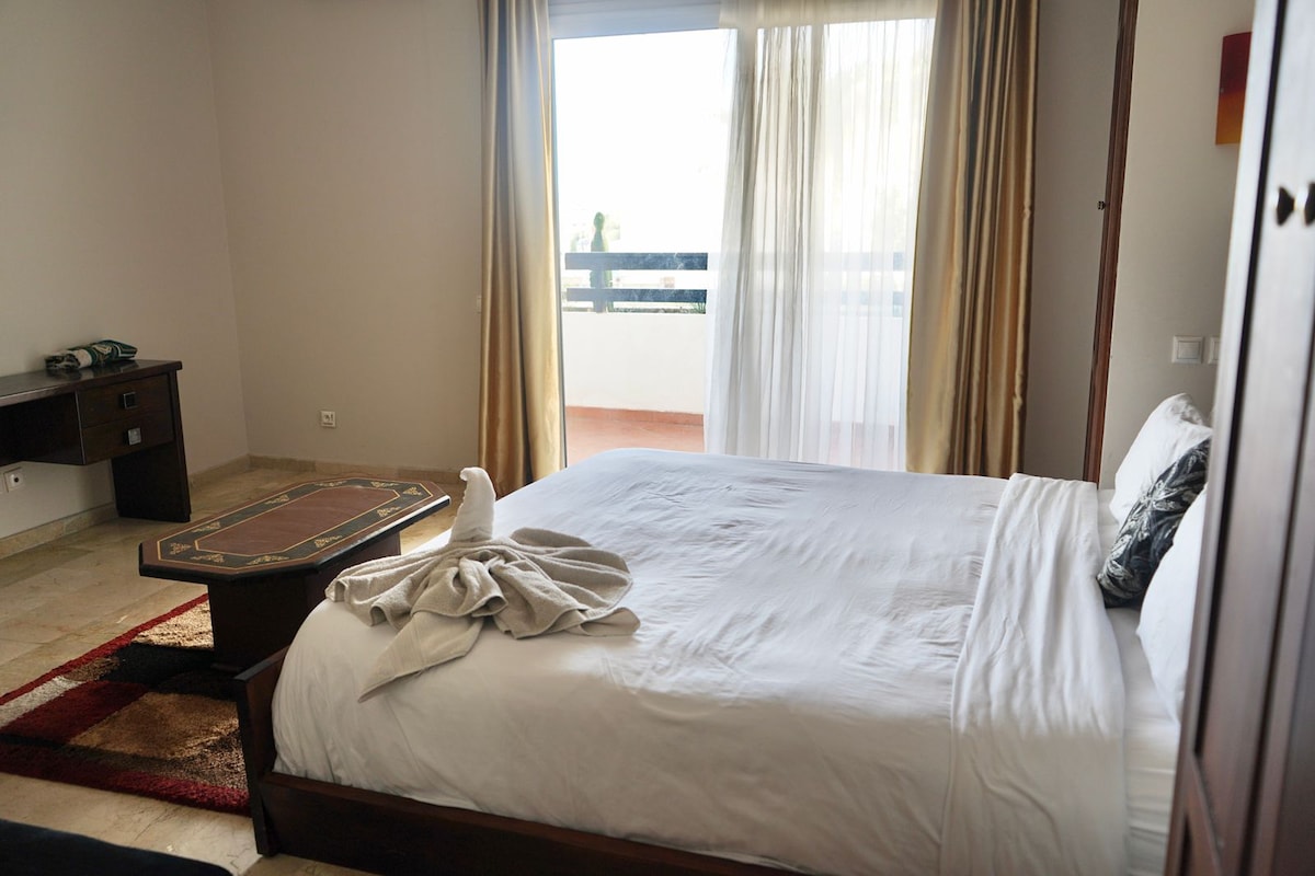 انعم بالهدوء والاسترخاء بصحبة عائلتكً و اصدقائك في هذا المسكن الهادئ.شقة أنيقة وجميلة في اقامة هادئة وآمنة مع موقف سيارات مجاني ماتحتاجه من أدوات راحة ستجده في شقة✔️شرفة واسعة يمكنك الاستلقاء والاستمتاع بمنظر اليحر من الشرفة ومنظر القولف والمساحات الخضراء Profitez du calme et de la détente en compagnie de votre famille et de vos amis dans cette résidence calme et sécurisée Un appartement élégant avec parking gratuit et un balcon spacieux où vous pourrez vous allonger et profiter de vue de la mer.