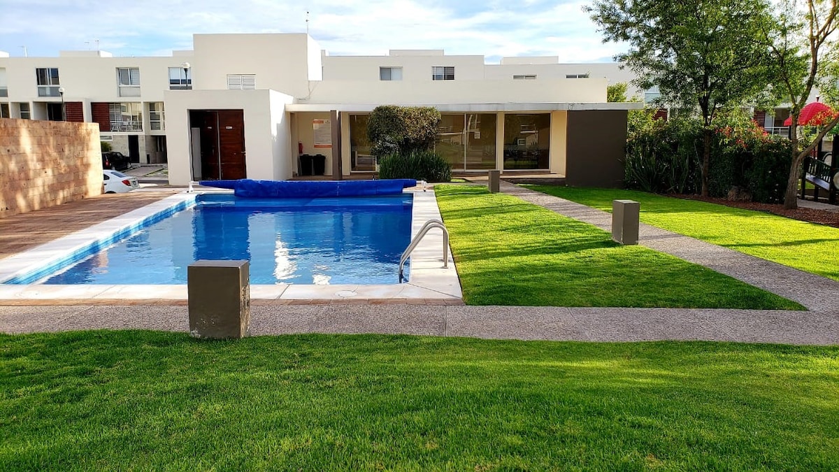 Доступно 💵 выставление счетов 💵 Стильное 🌿уединение в Керетаро🌿 🛏️ Две спальни | две ванные комнаты. ⭐Главная спальня с кроватью размера King size и собственной ванной комнатой. ✨Вторая спальня: кровать размера Queen size. 👶 Ребенок предоставляется по запросу. Общие помещения 🎥 ТВ-зал: 65-дюймовый экран со стриминговым доступом. 🍳 Кухня - полностью оборудованная для вашего комфорта 🌿 Задний двор: тихий и уютный, идеально подходит для отдыха. Удобства 🏊 Бассейн 💪 Тренажерный зал. 🏀 Баскетбольная площадка. 🎡 Детская площадка ✨ Cosmos Homes Quality